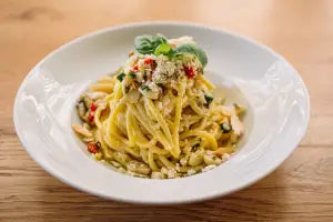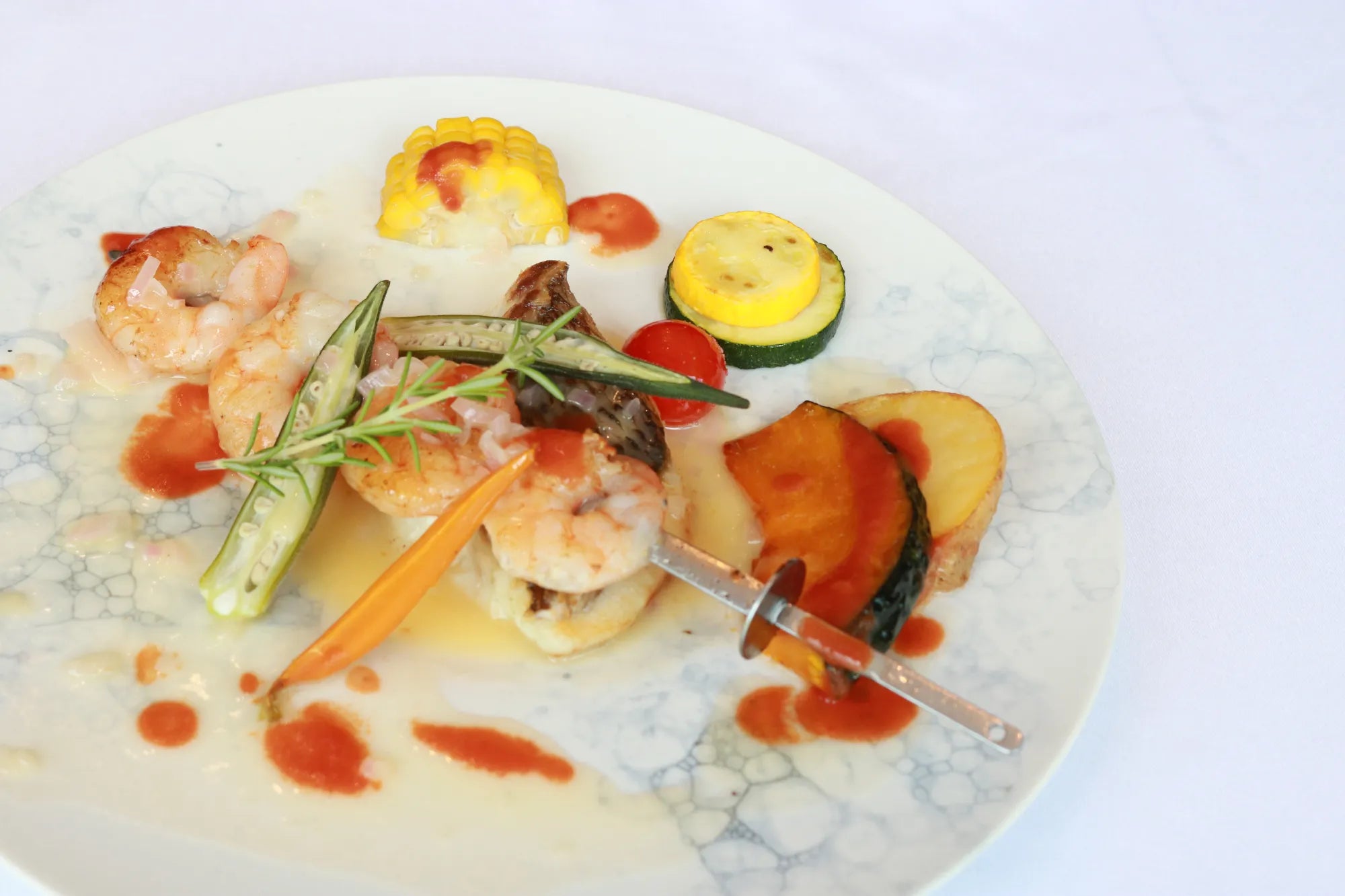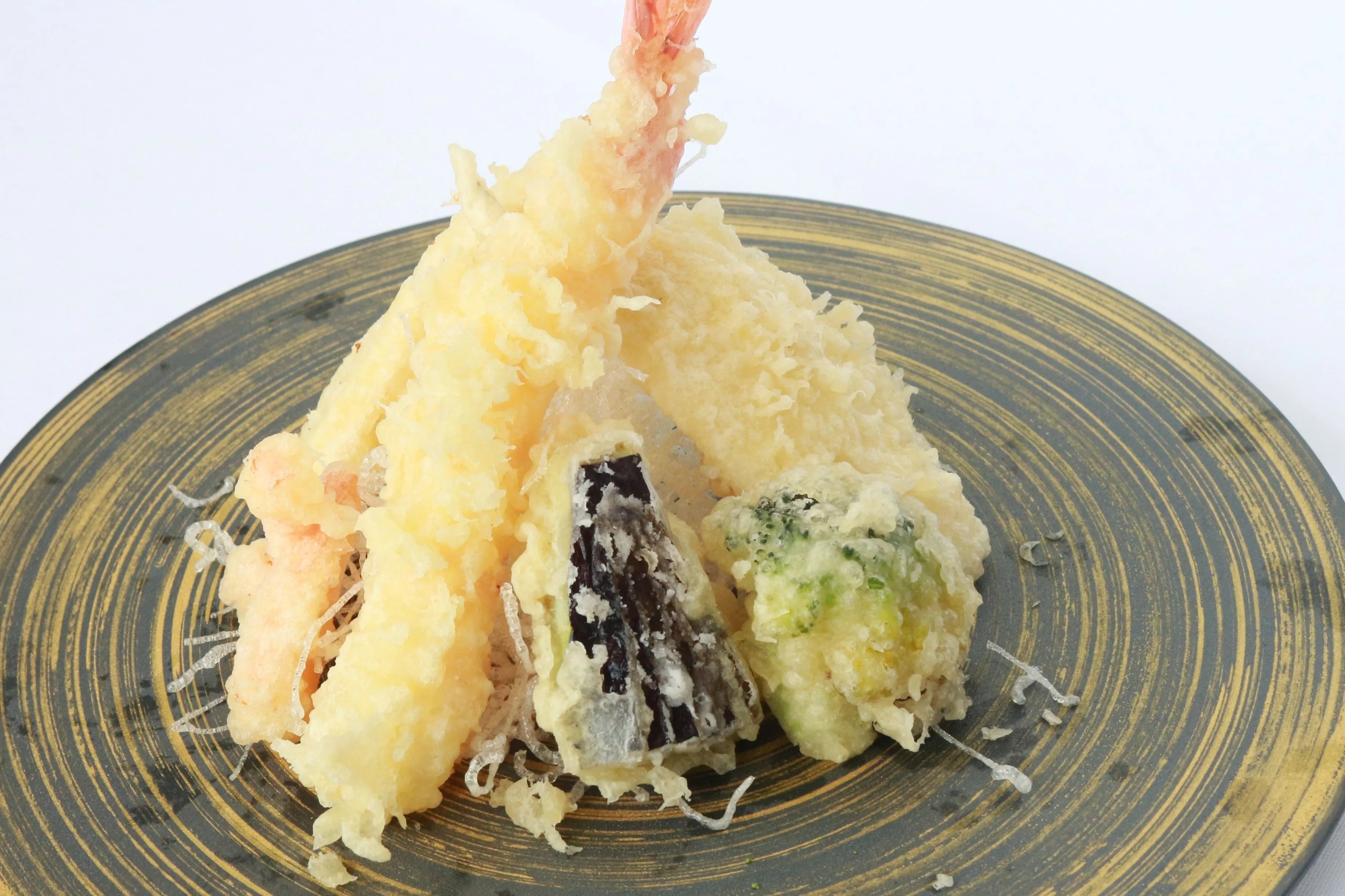 Locally grown vegetables and seafood tempura