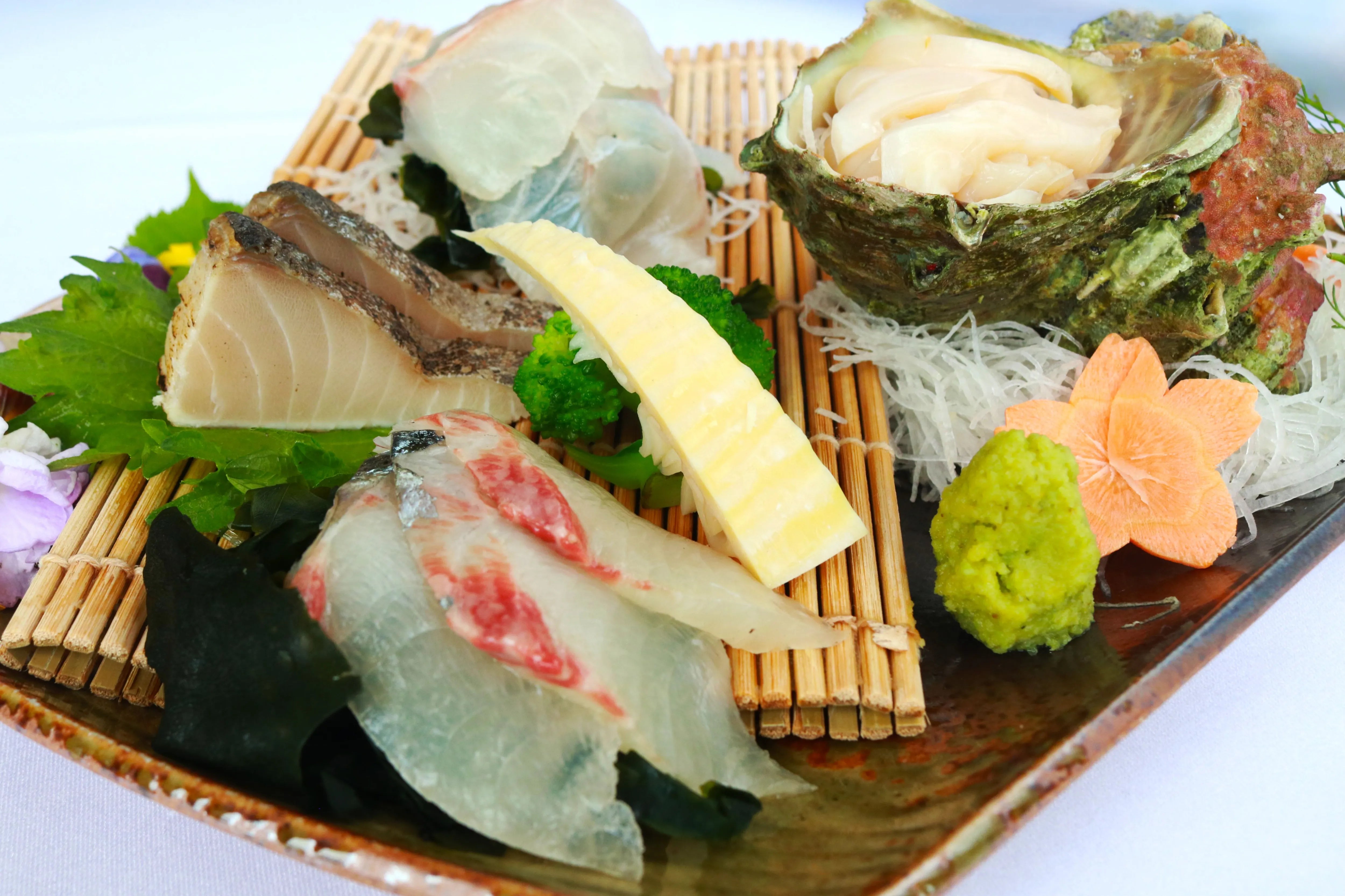 Assorted fresh fish sashimi.