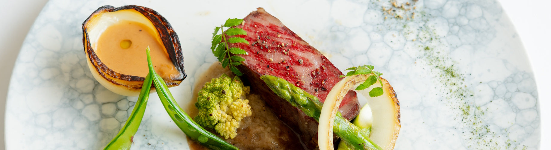 | Gilled NAGASAKI Beef | 長崎和牛ロースのロティ 新玉ねぎのジュ |