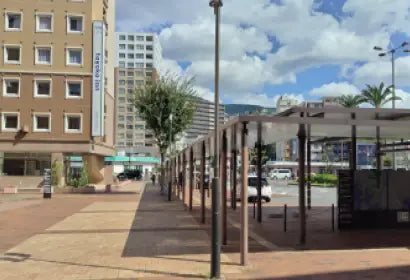 佐世保駅東口正面を出ますと左手にある東横イン(東横INN) 前あたりにてお待ち合わせをお願いいたします。
